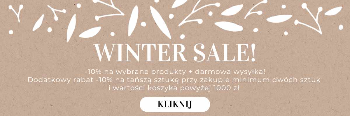 Winter sale -10% i darmowa wysyłka w styczniu! Przy zakupie minimum 2 sztuk (i wartości koszyka ponad 1000 zł) dodatkowy rabat 10% na tańszą rzecz!